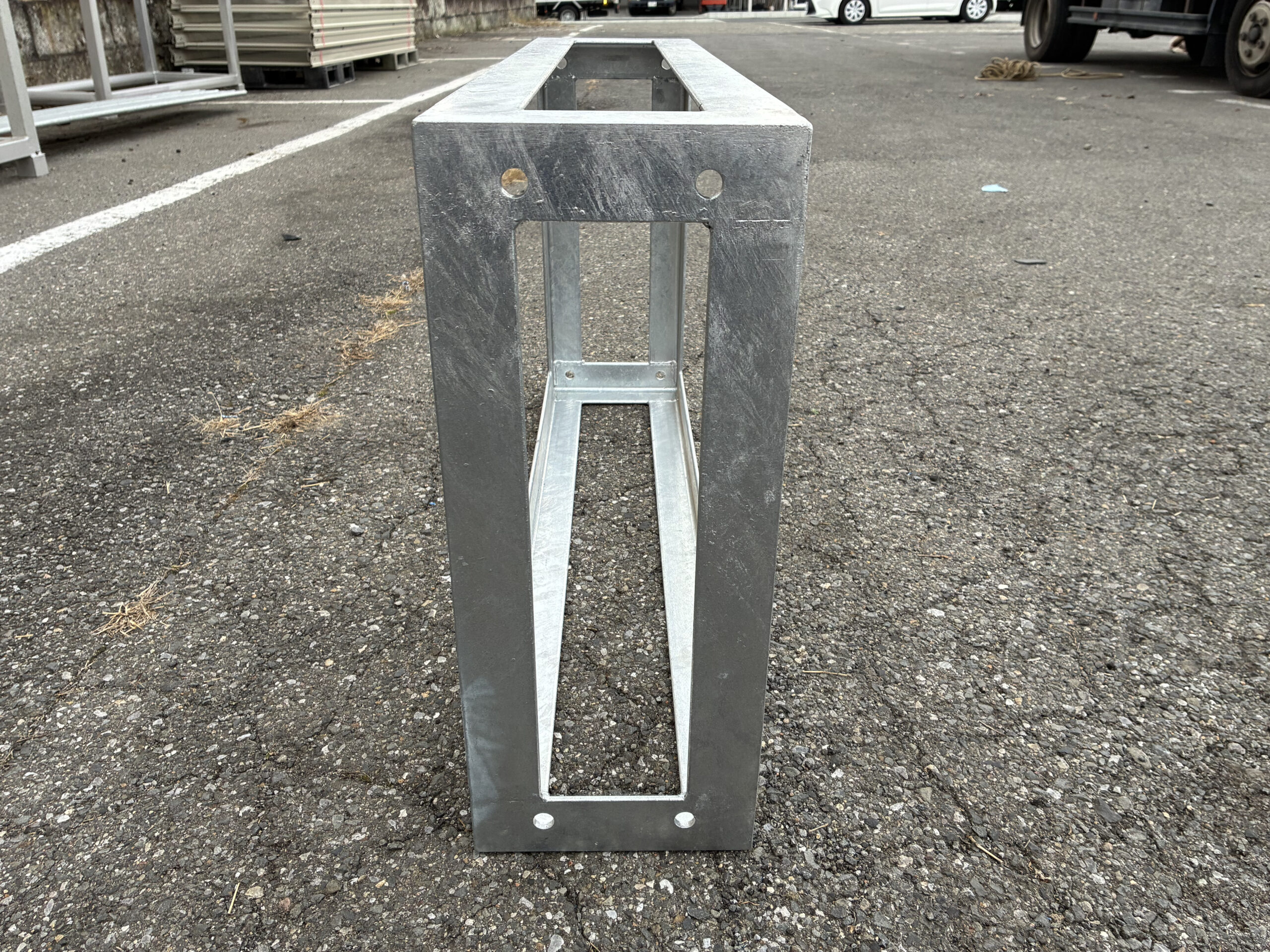 屋外設置のため、耐食性に優れた溶融亜鉛めっきを施しております。より耐食性が必要な場合は、コストが多少上がってしまいますがステンレスに置き換える、あるいはコストを抑えるのであればZAM・スーパーダイマといった材質もご提案しております。