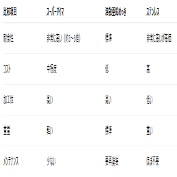 スーパーダイマは、コストパフォーマンスの面で特に優れており、「ステンレスほど高価ではないが、耐久性が高い素材」として多くの現場で採用されています。